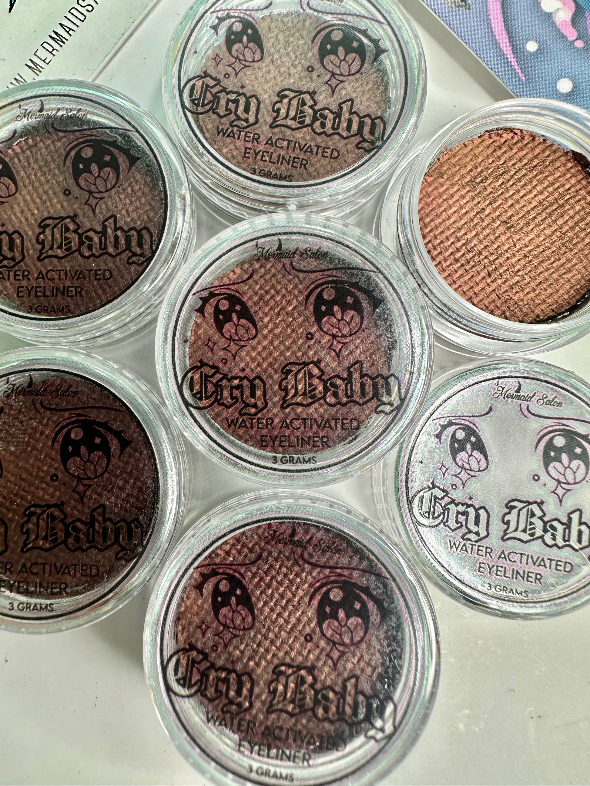 Mermaid Salon CryBaby Aqua-Liner is a traditional eyeliner / face paint hybrid. Cauldron smoke is a beige to lilac to aqua pastel shift.