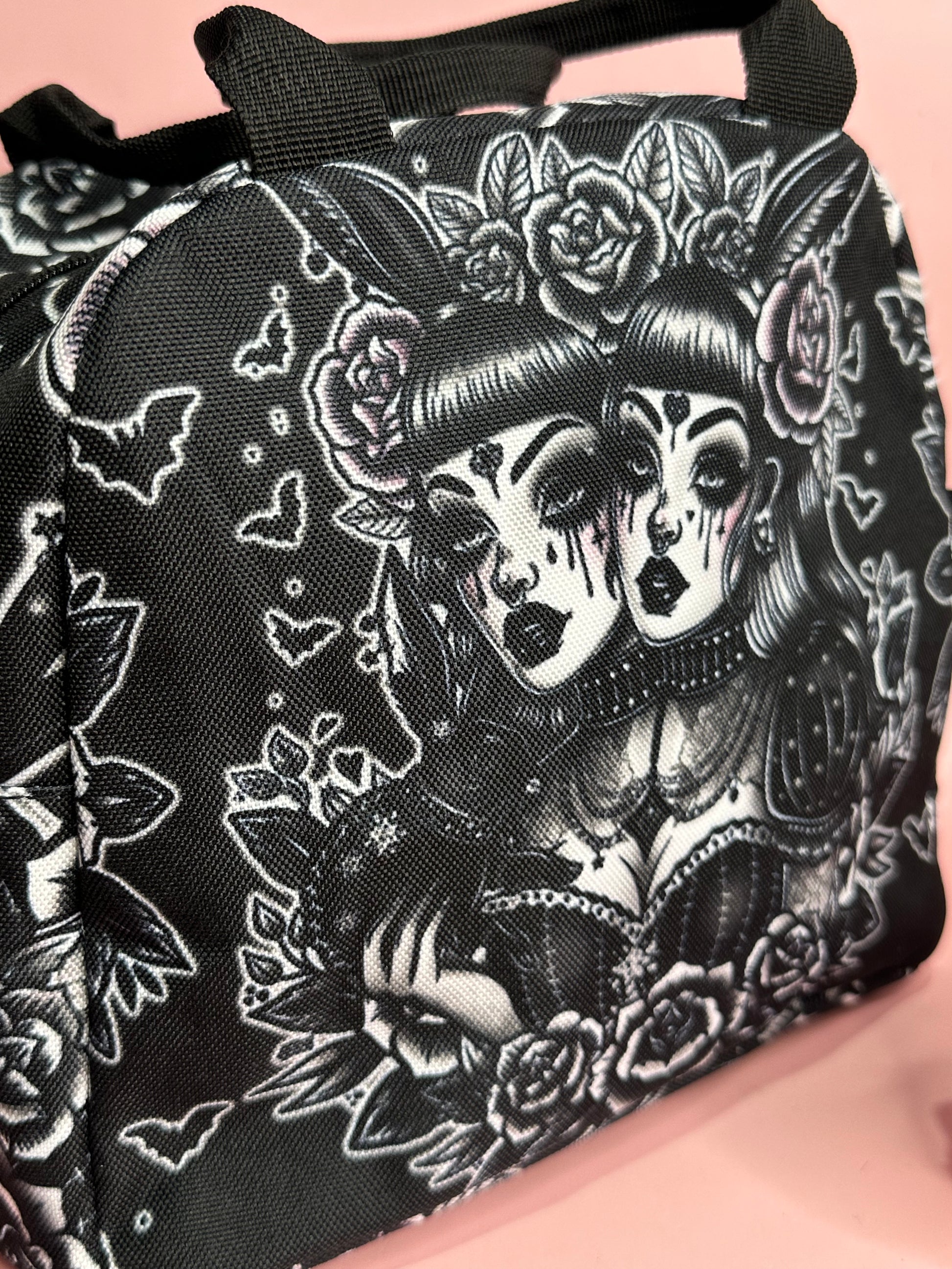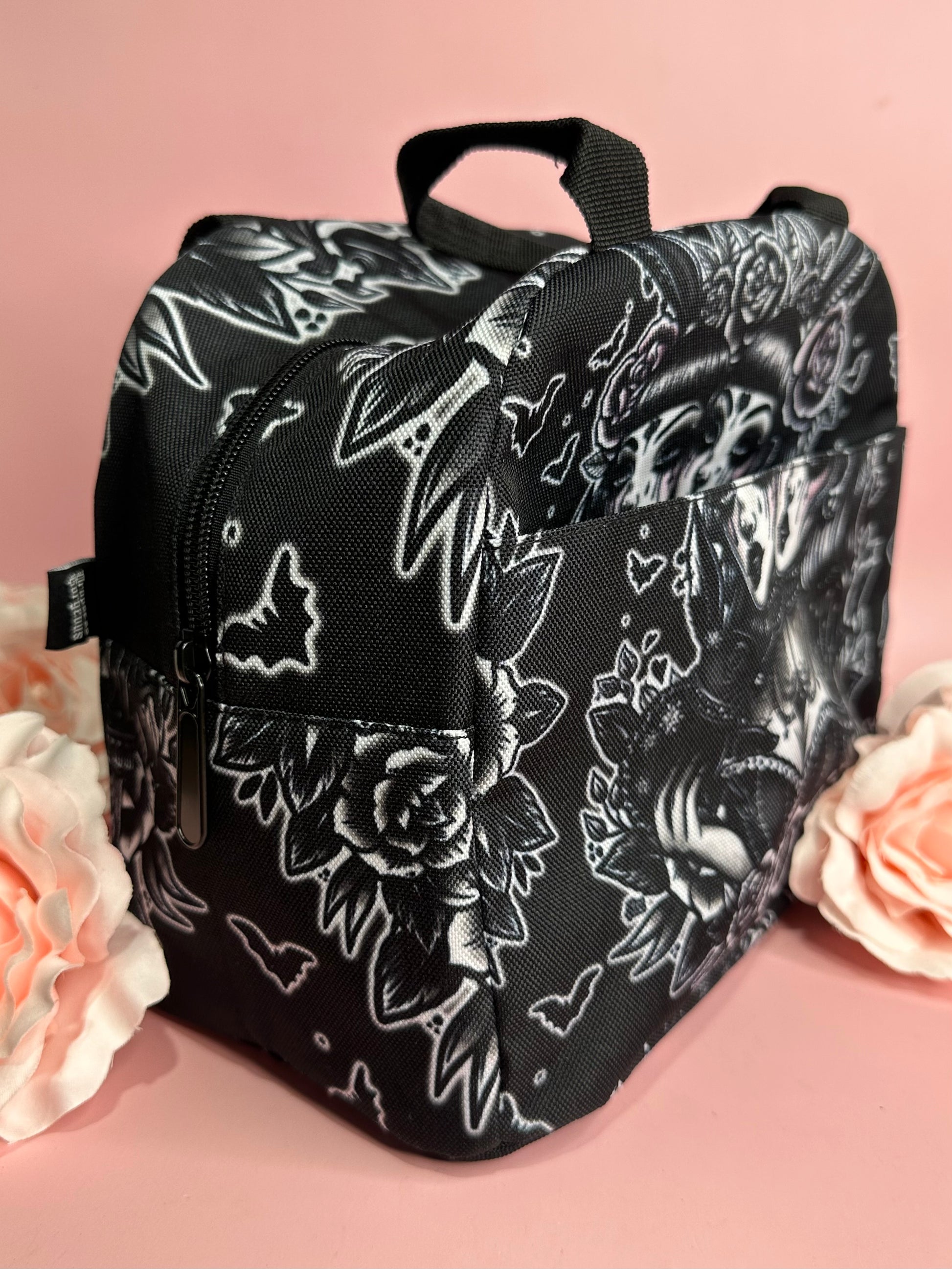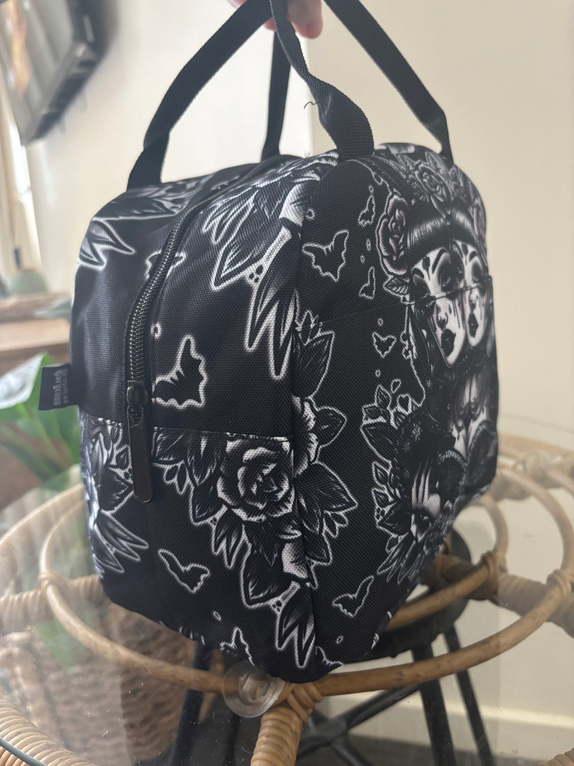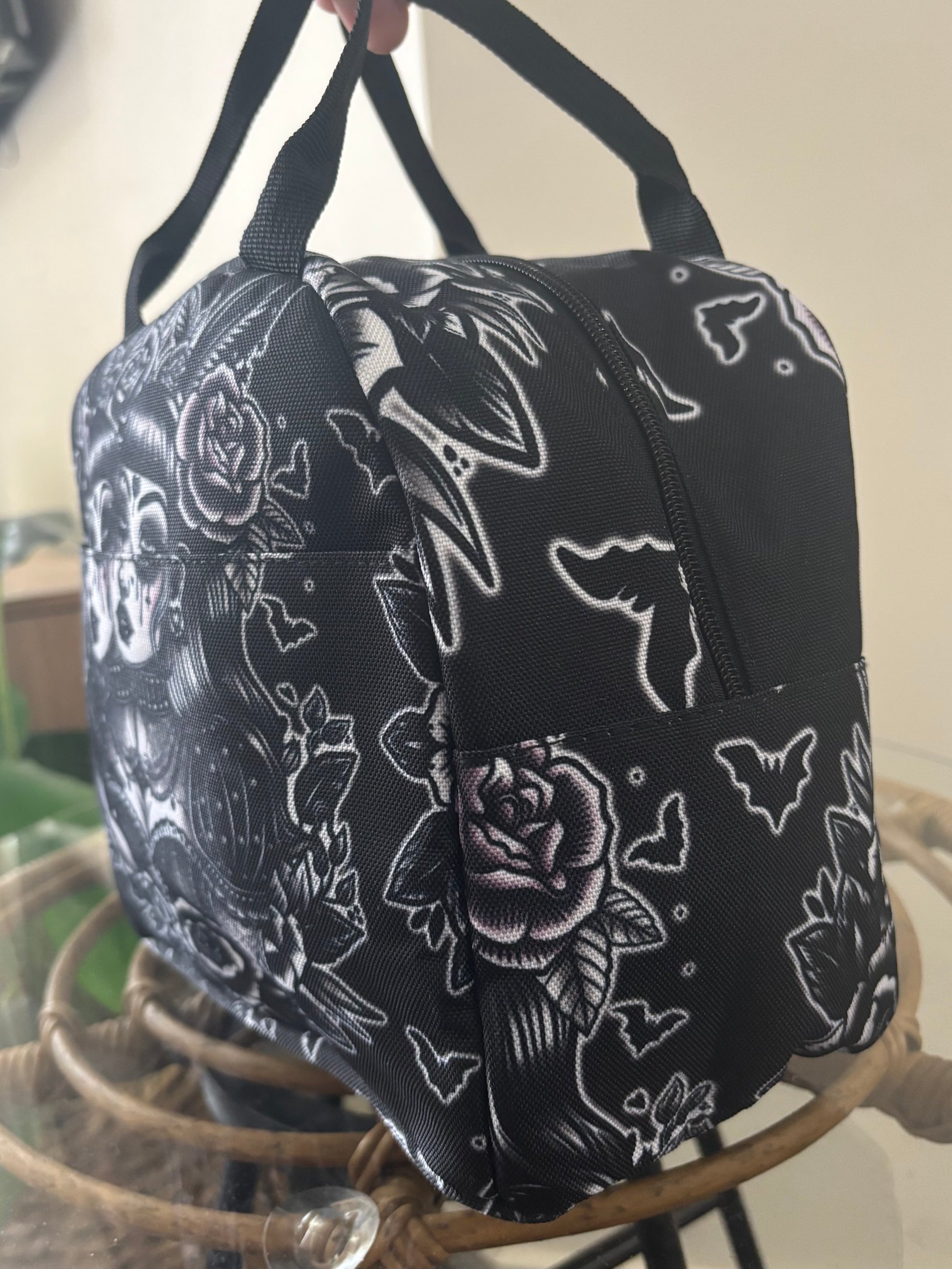 Spend your lunch time in magical style with our insulated, zipper top lunch bags! Heavy duty poly canvas construction with insulated lining to keep your lunch either cold as the night or hot as hell.