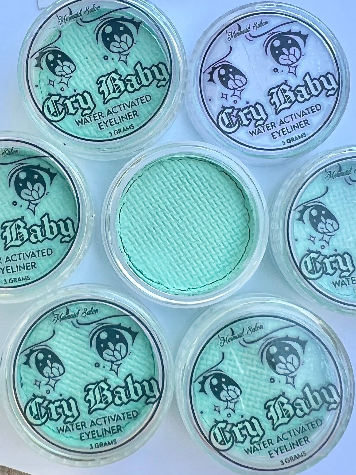 Mermaid Salon CryBaby Aqua -Liner is a traditional eyeliner / face paint hybrid.