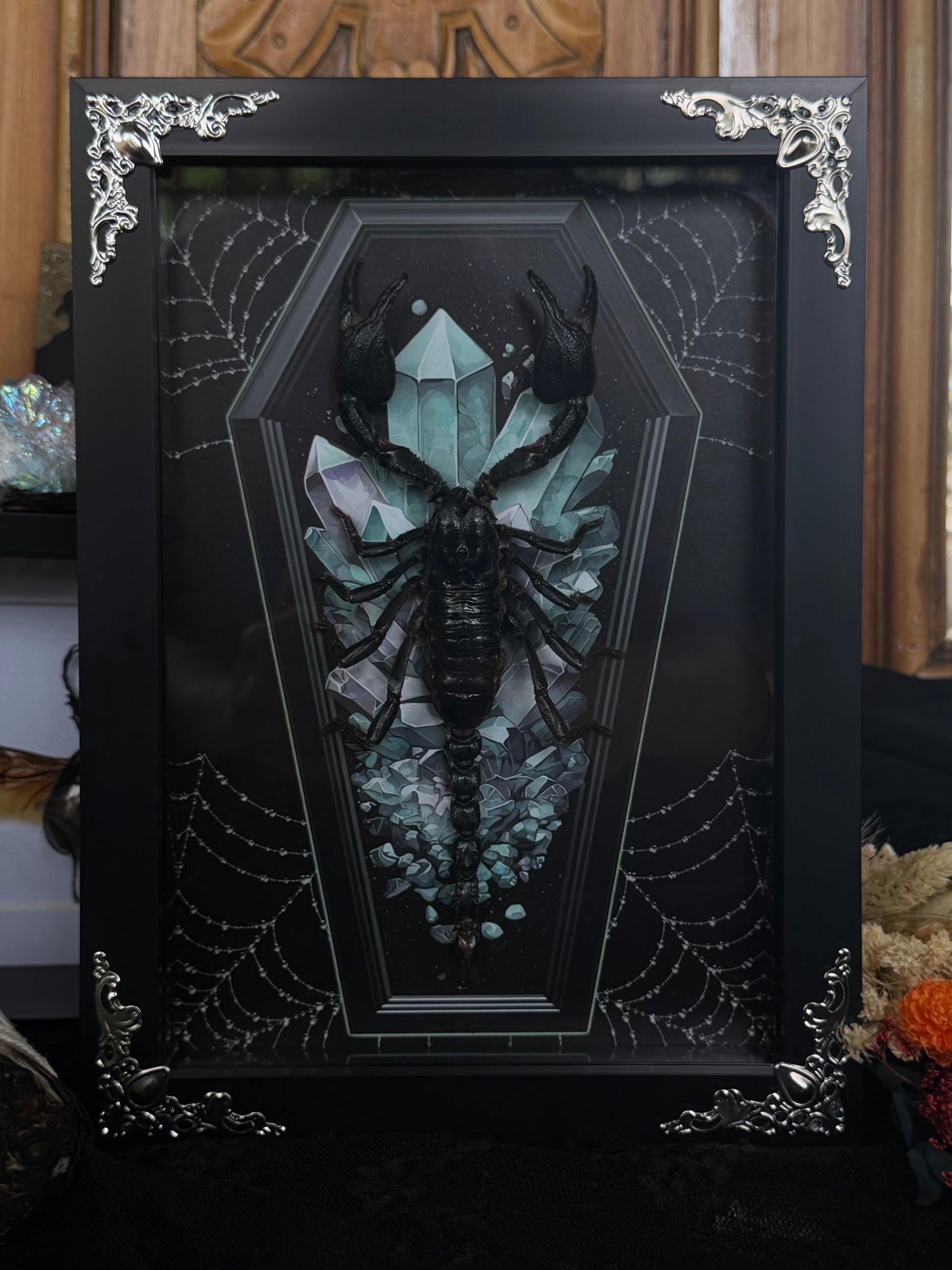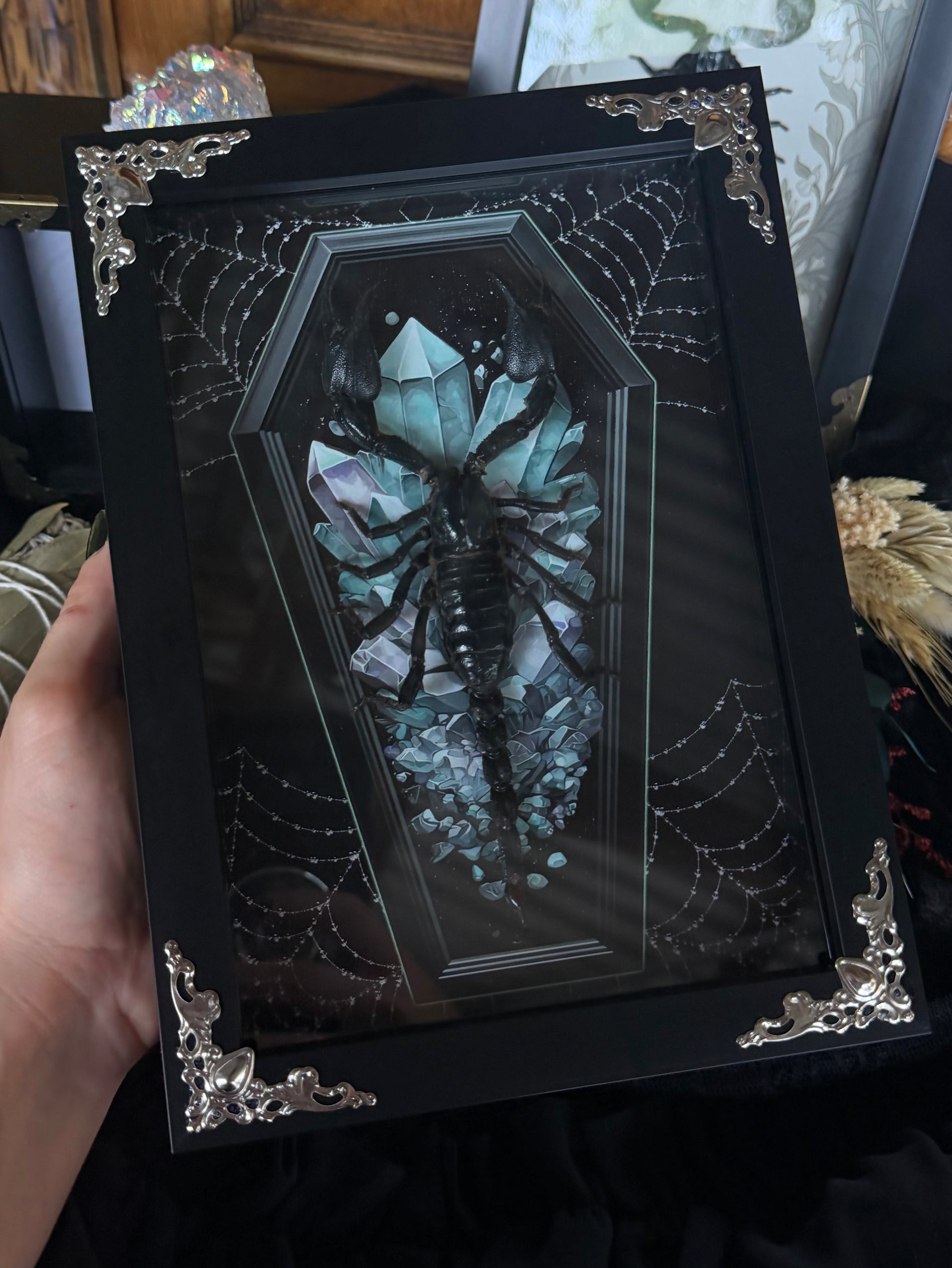 Forest Scorpion - Genus Heterometrus Frames Specimen (BLUE COFFIN)