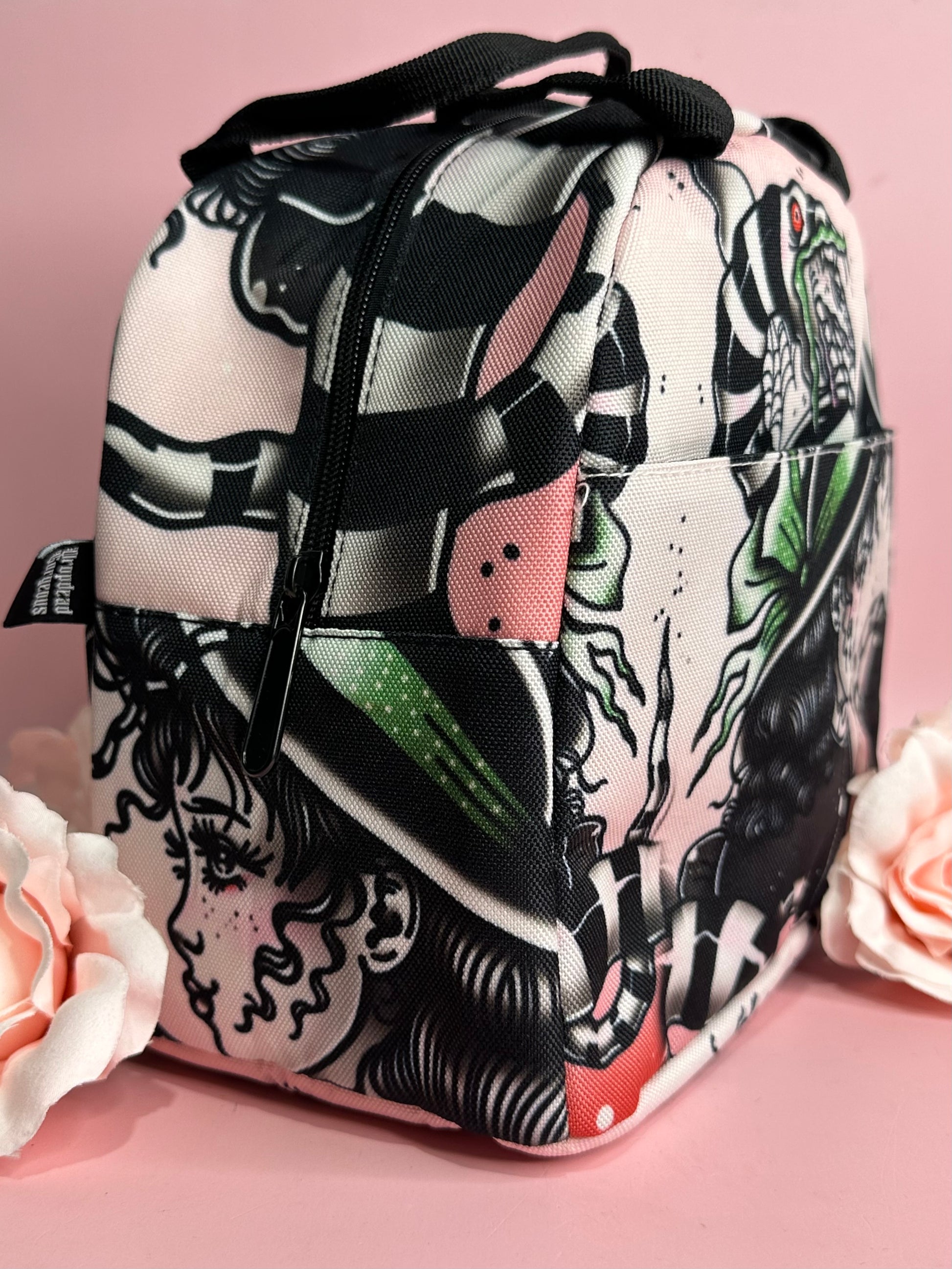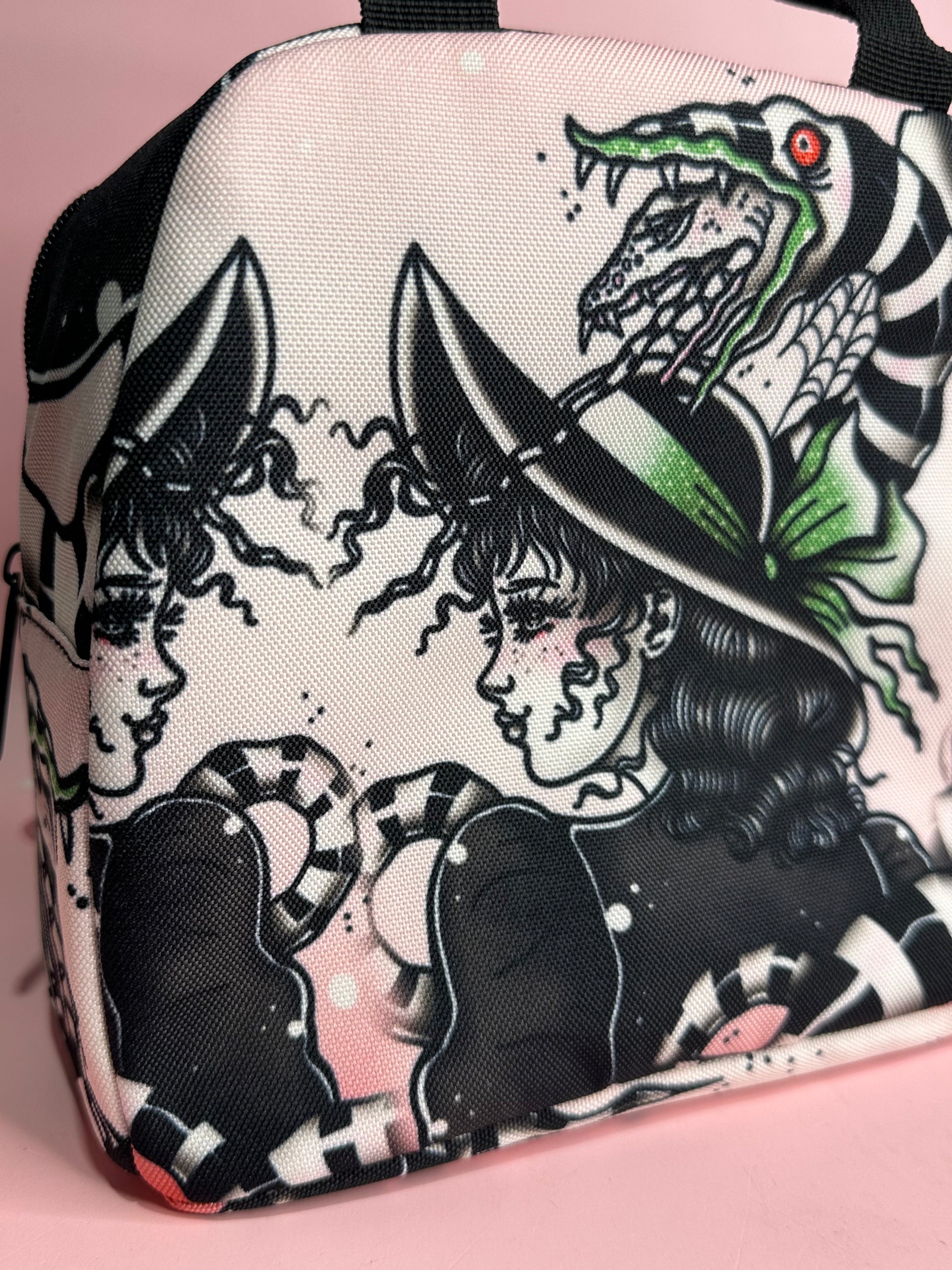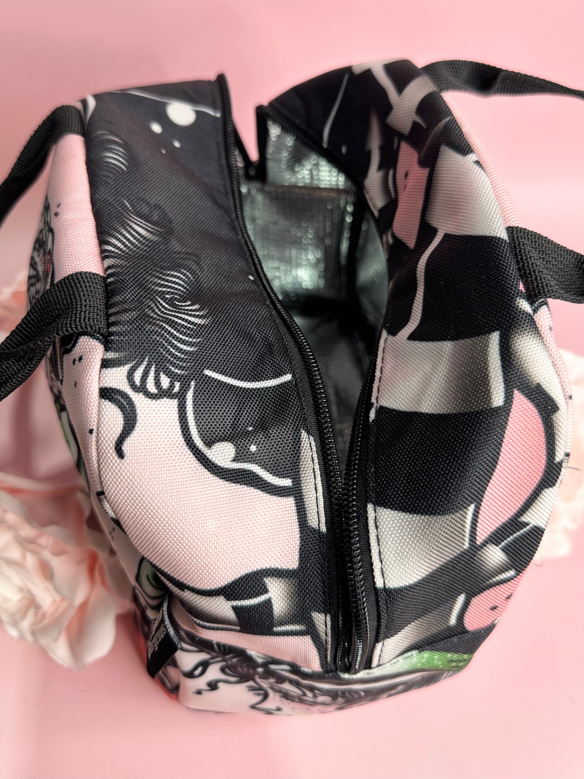 Spend your lunch time in magical style with our insulated, zipper top lunch bags! Heavy duty poly canvas construction with insulated lining to keep your lunch either cold as the night or hot as hell.