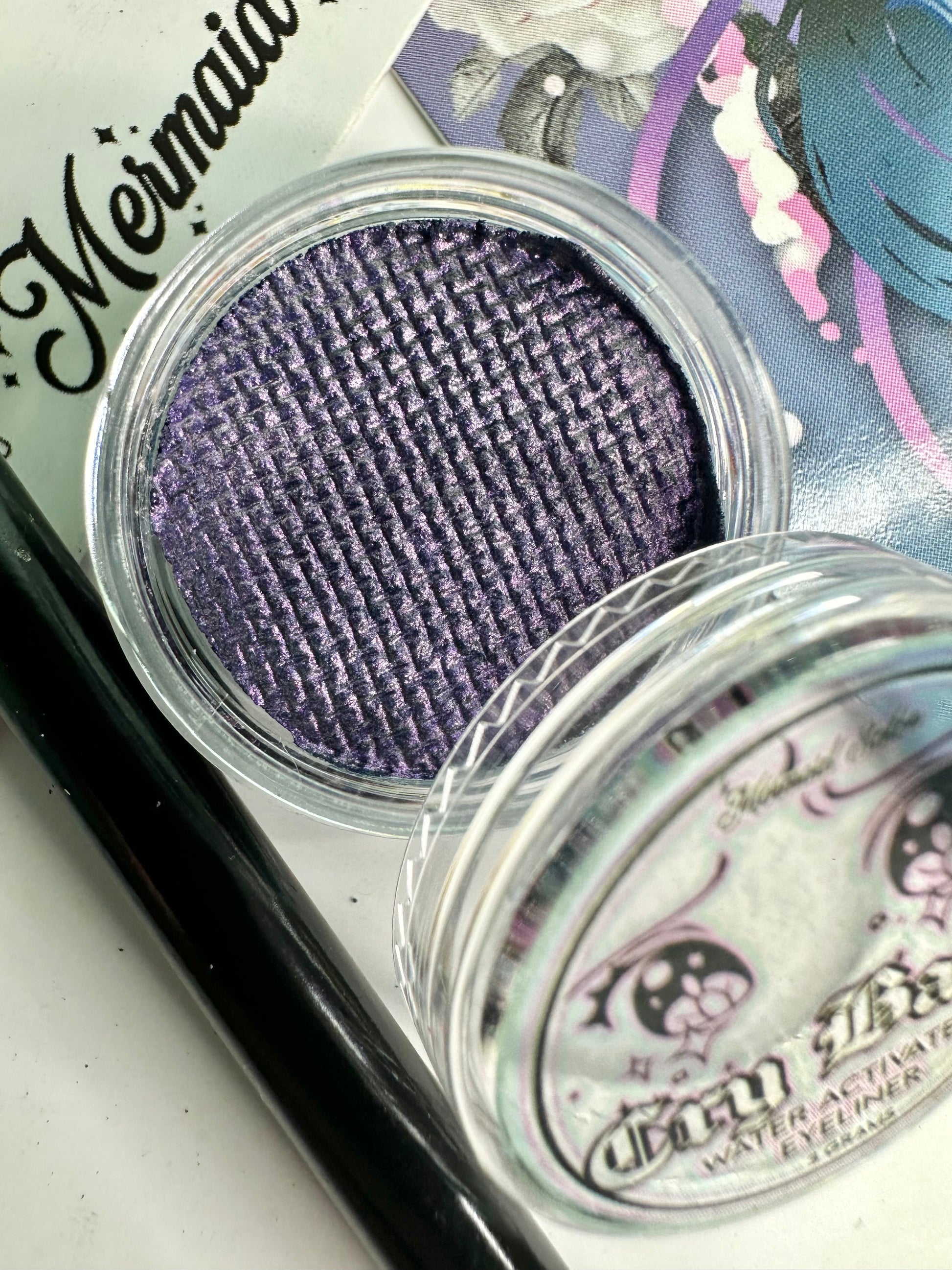 Mermaid Salon CryBaby Aqua-Liner is a traditional eyeliner / face paint hybrid. Cauldron smoke is a beige to lilac to aqua pastel shift.
