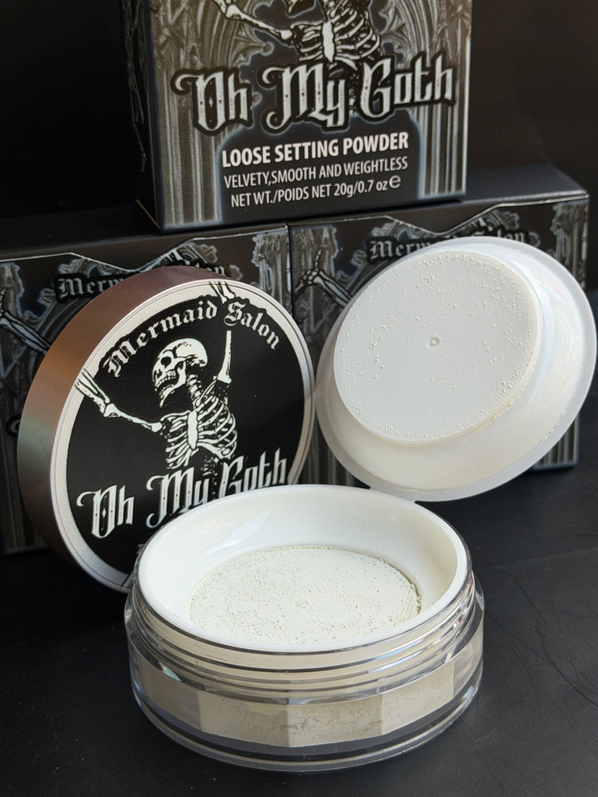 Haunt it and flaunt it with the OH MY GOTH velvet matte Loose Setting Powder! This opaque powder will set your foundation for hours of partying and looking deathly gorgeous.